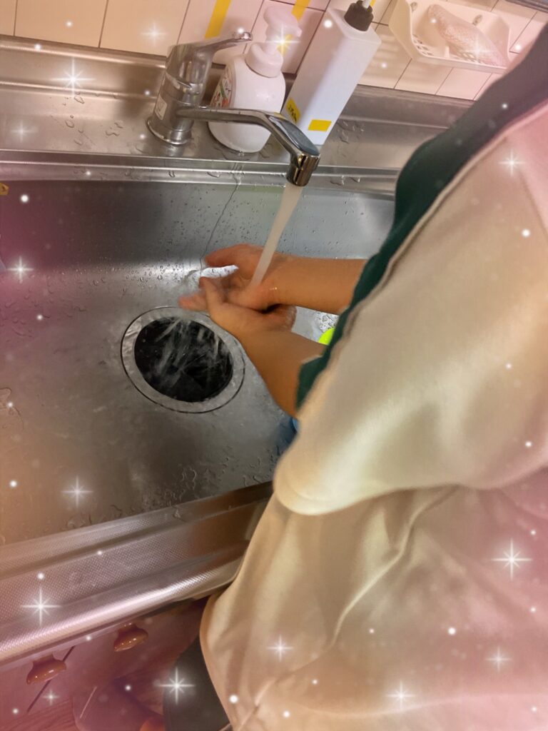 来てすぐに手洗いをしました。