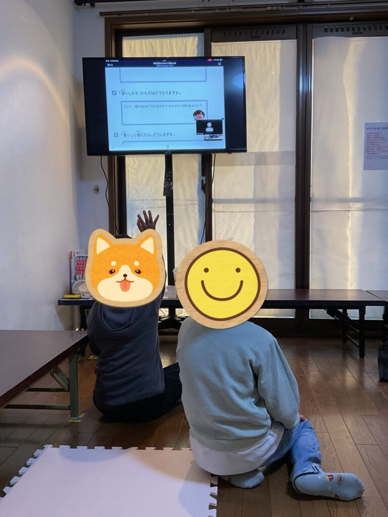 療育様子です。画面向かって集中し、わからないところは子どもたち相談して答えてました^ – ^