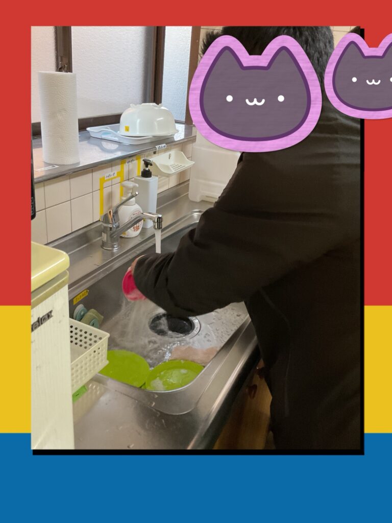 帰りの掃除を行なってます。食器洗いを手分けしてキレイに洗っています。みんなで協力して頑張っていました🌟