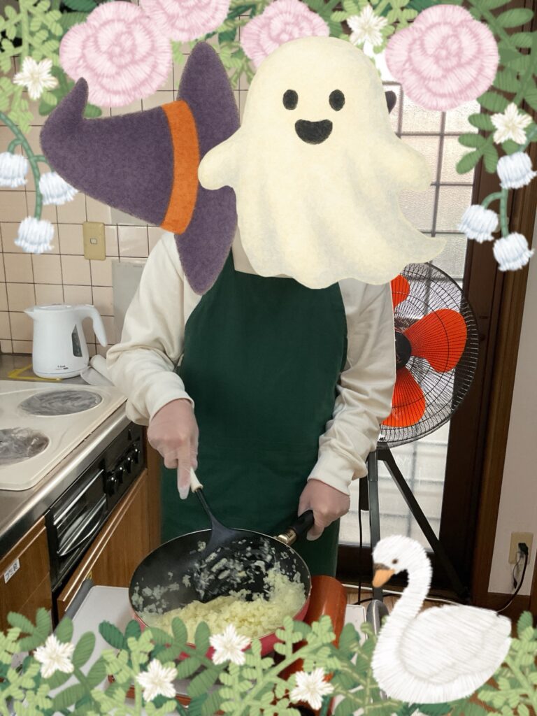 刻んだ玉ねぎをフライパンでしっかり炒めます^ ^