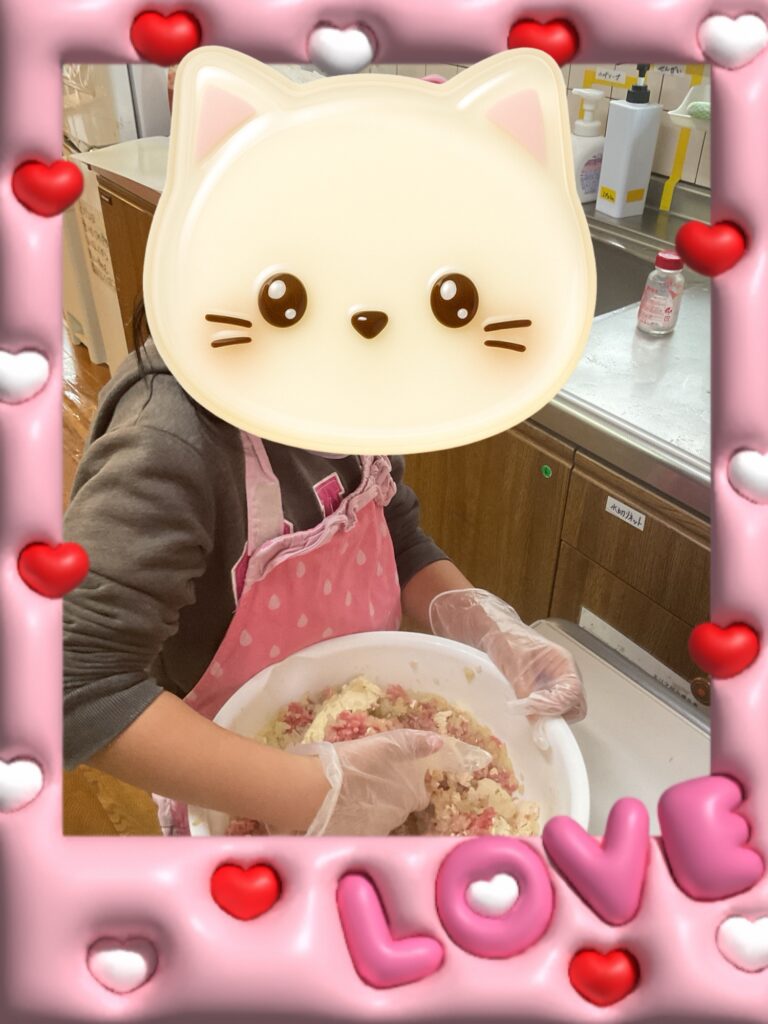 次はハンバーグづくりを行います。