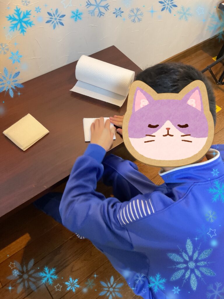 使った机をきれいにしようと、隅々まで意識して拭くことができ、気持ちよく次の活動に移ることができました。