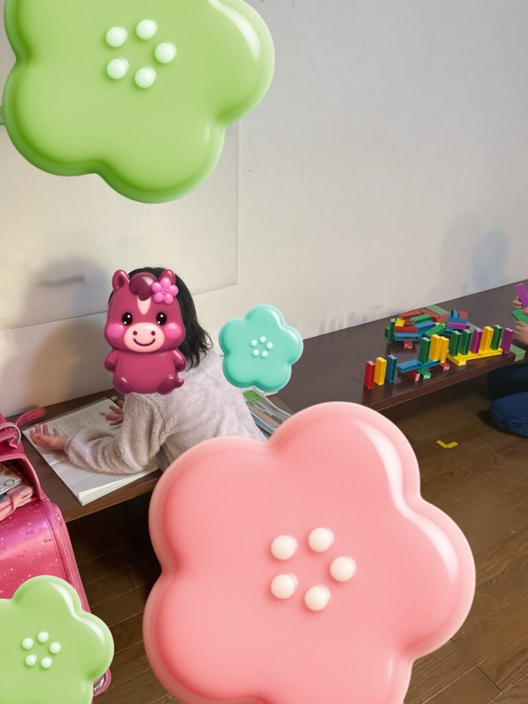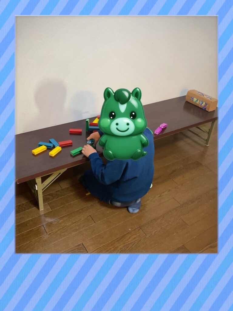 課題が終わり好きな事をしています。ジェンガを楽しみ、そしてジェンガを倒さない様に考えして遊んでいました