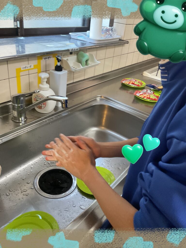帰ってすぐに手洗いを始めてました。泡をつけ手を擦った後たくさんの水を使い丁寧に流し手洗いを終えました