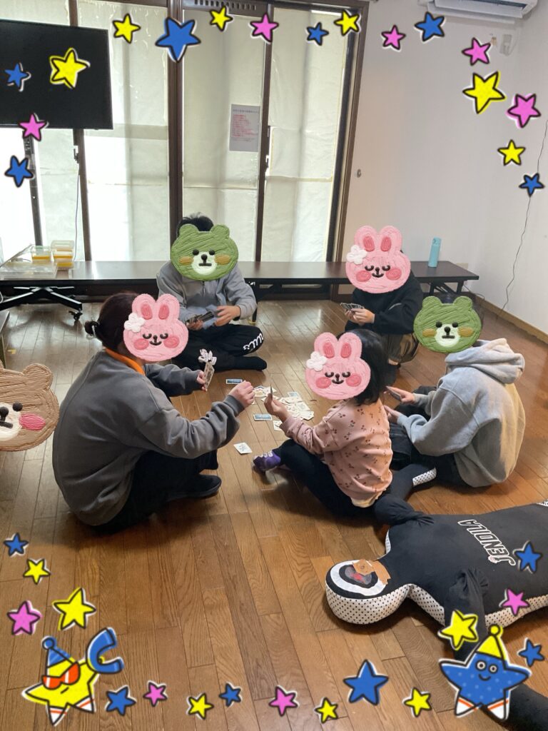 自由時間は子どもたちはトランプ遊びババ抜きしてました。ババ抜きをしている時は、真剣な顔になったり、笑顔になりコロコロ変化してました🎶