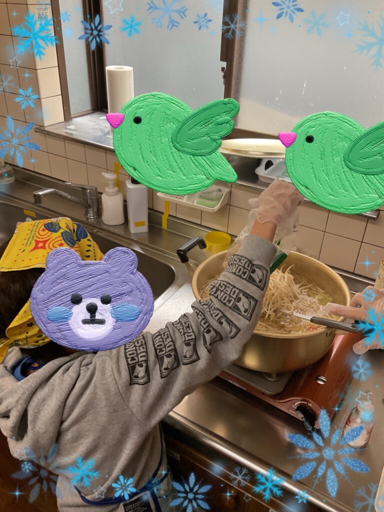 体操のが終わり調理実習実習でラーメンを作りました。味付けしたり、材料を鍋に入れてして完成させました😊