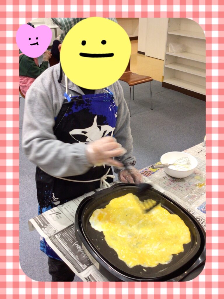 今日はみんなで昼食にオムライスを作りました。