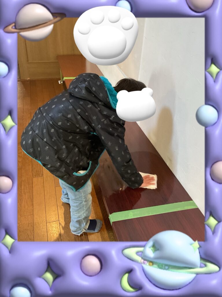 机の上をアルコールの染みたペーパーで拭いています。毎日している事なので手慣れたもので、すぐにキレイになりました🌟