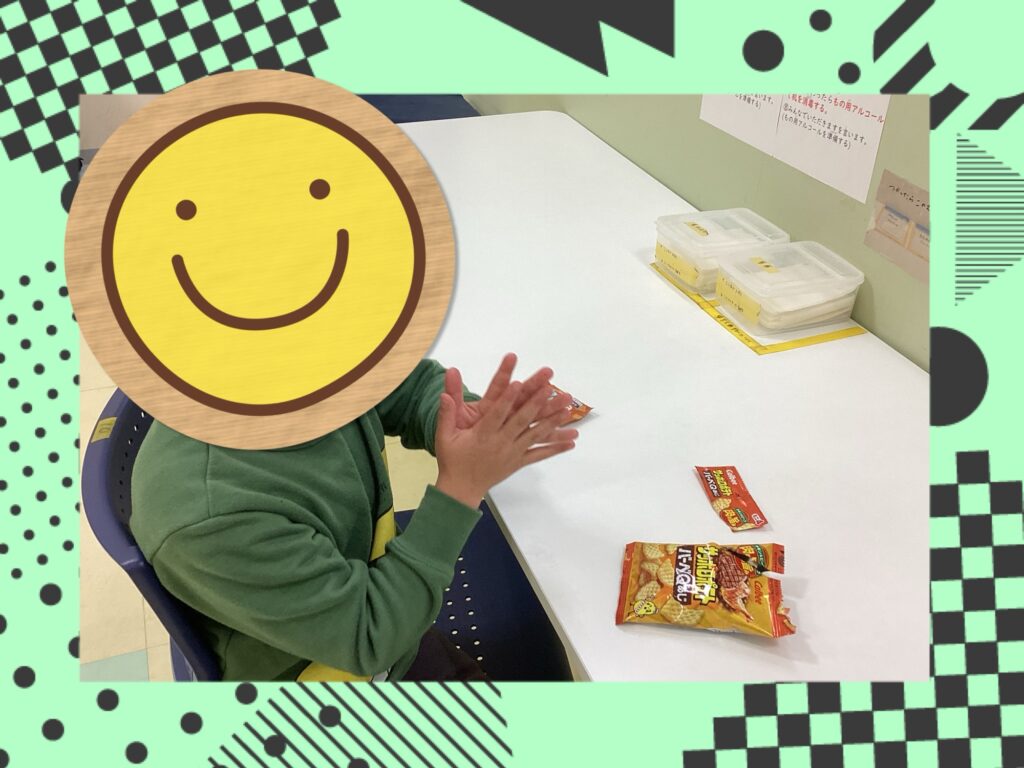 好きなものを選び、おやつを食べる準備をします。