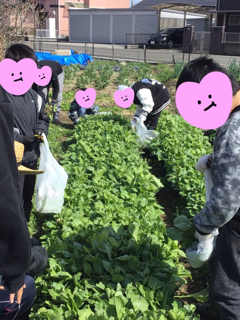 畑に行って野菜の収穫や作業を行いました。