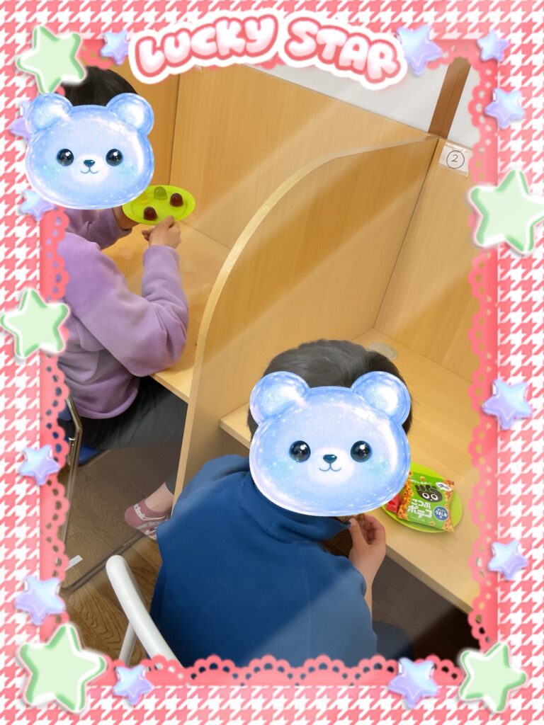 おやつの時はすごくいい笑顔で食べていました^ – ^