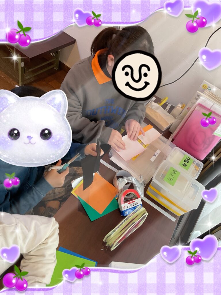 スタッフと友達と一緒に手作りのシール帳を作りました。