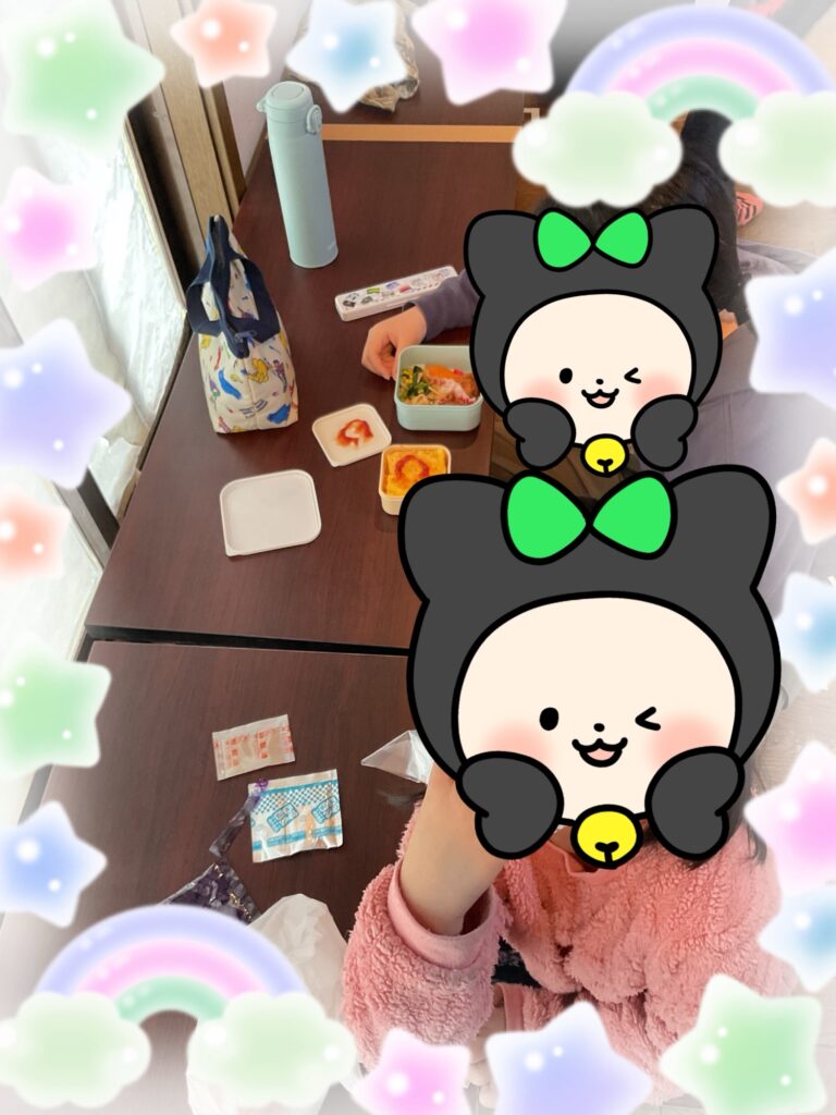 お昼になりお弁当の時間にです。子どもたちは好きなお弁当を食べ、嬉しいそうな顔をしてました❣️