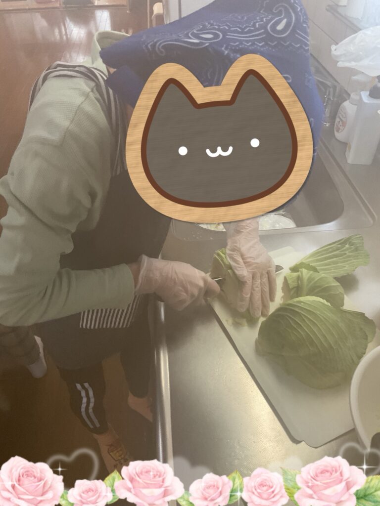 今日は調理実習なのでキャベツを頑張って切ってくれました。