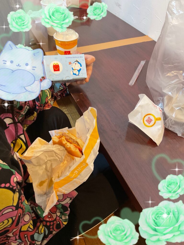 お買い物実習にレッツゴーです。行き先はマクドナルドで、自分で計算しながら予算内で好き昼食を買っていました❣️ お金使い方うまかったね。
