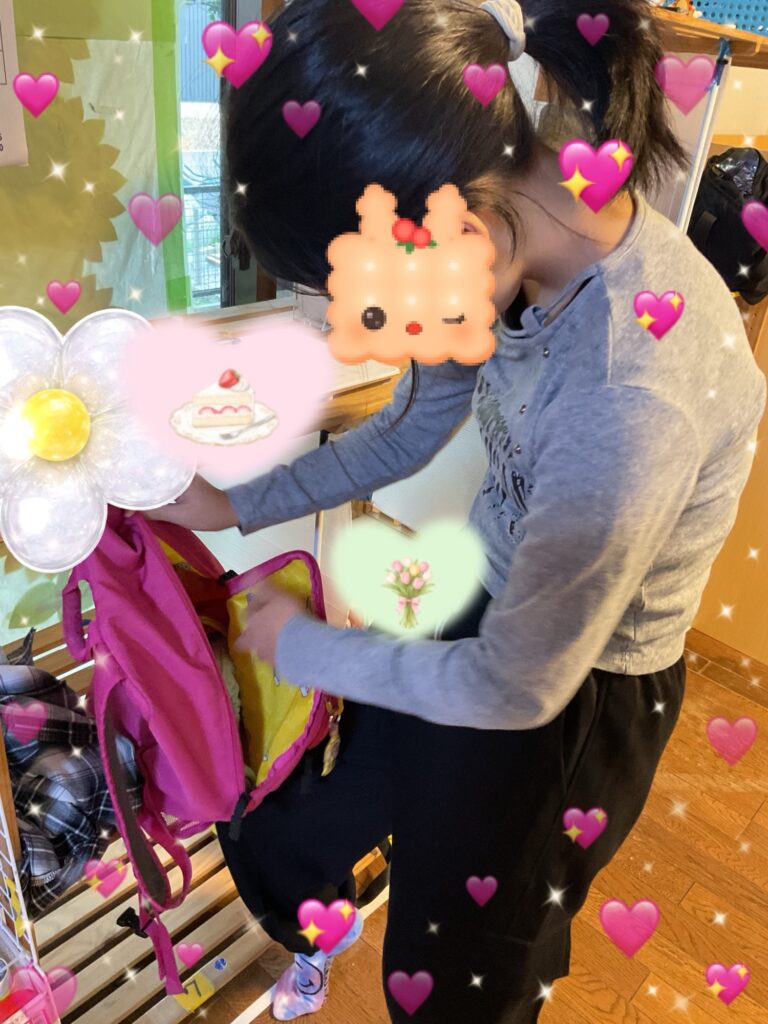かばんを自分の場所にちゃんとしまいました。