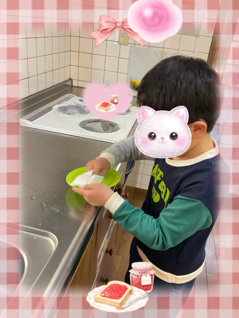 お皿を頑張って拭きましたね。