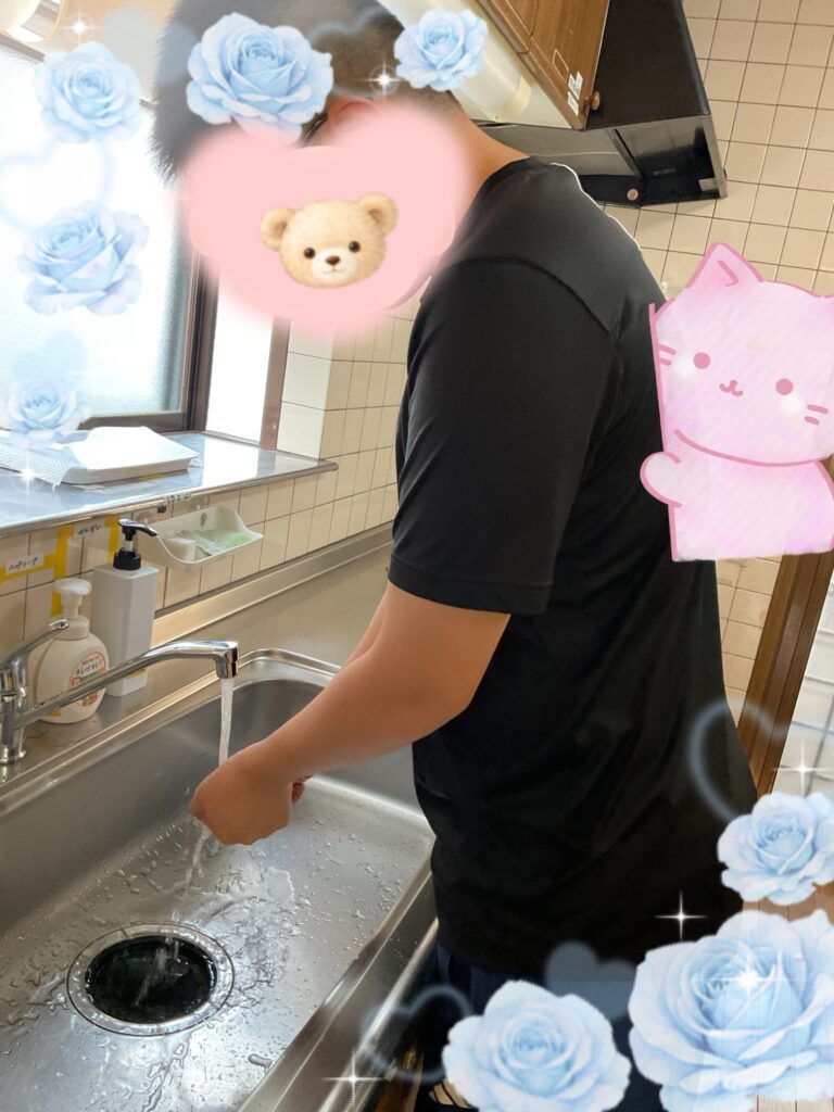 手をきれいに 洗いました。