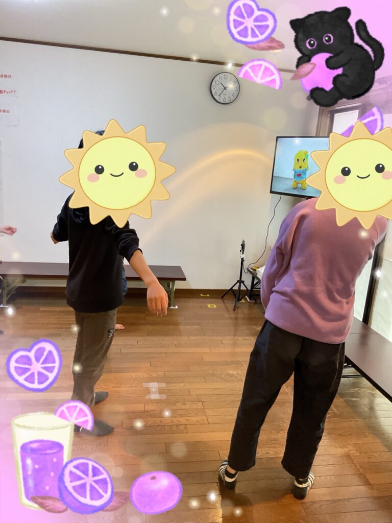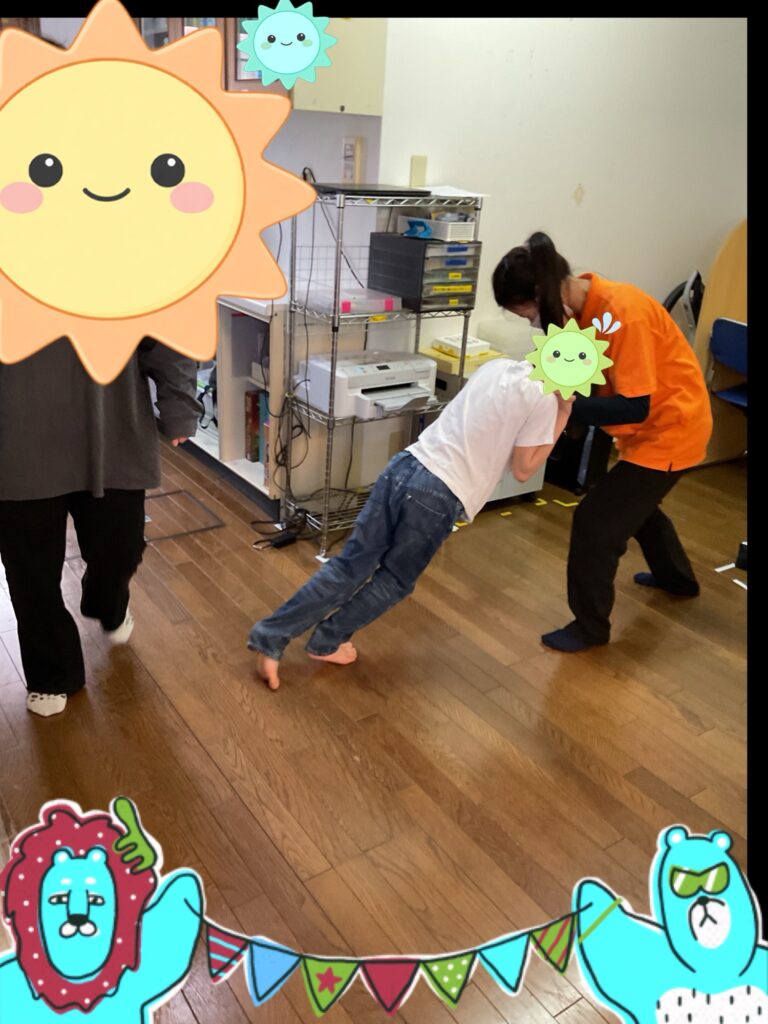 課題などが終わった後スタッフとS君は相撲をしていました🎶 思いっきり力を入れスタッフを押して相撲をとっていました(笑笑)