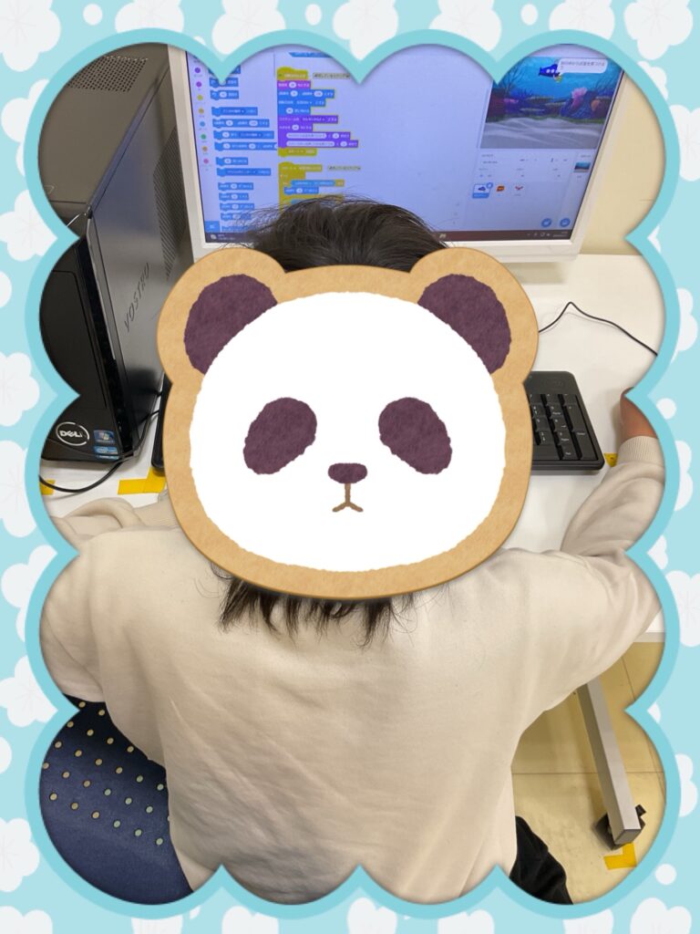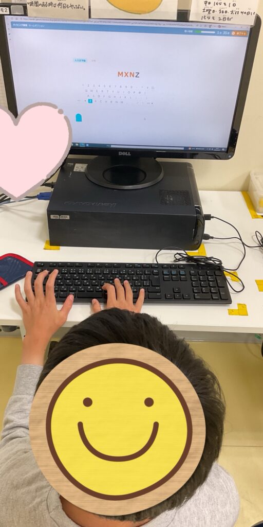 パソコン活動です。タイピング、プログラミング、最後にお友達との自由活動もします。
