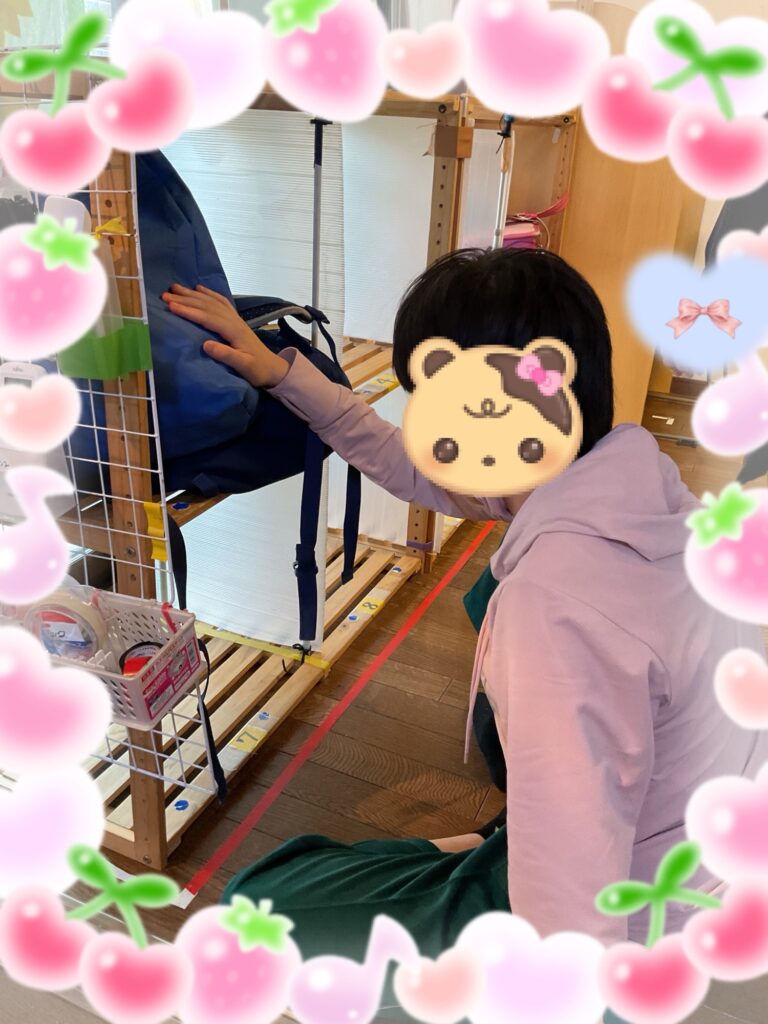 指定された所に鞄を片付けます。