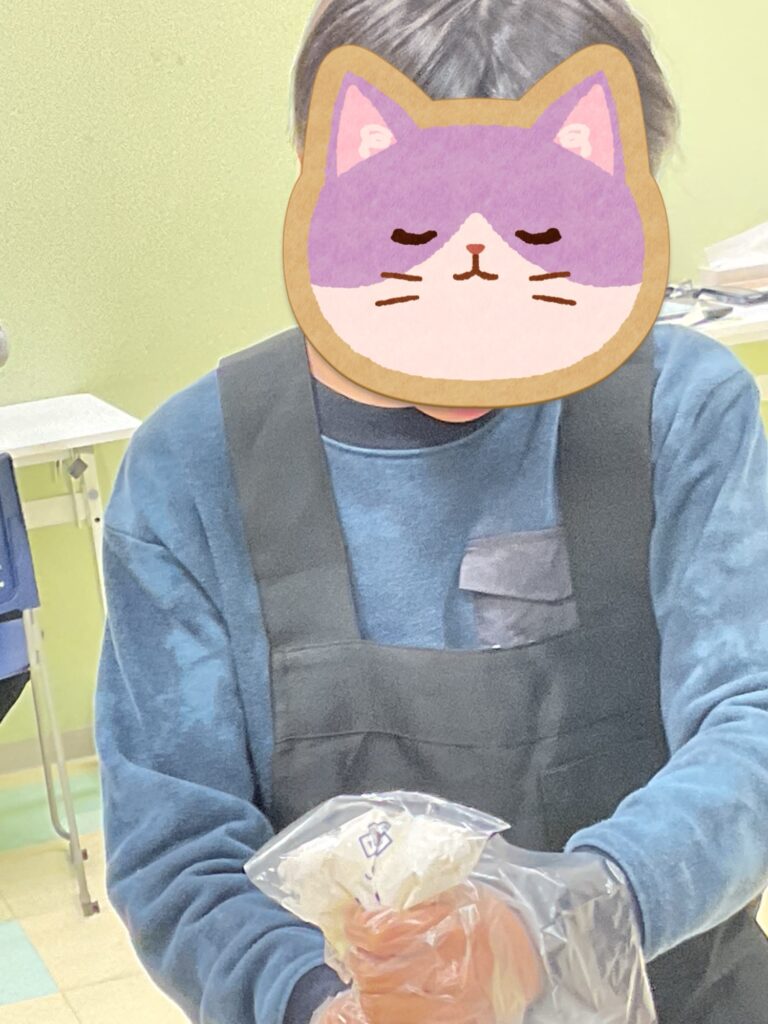 ホイップクリームを入れていきます。綺麗に入れることが出来るかな。