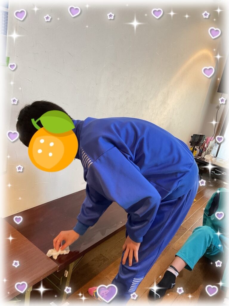 机の上をアルコールの染みたペーパーで拭いています。毎日している事なので手慣れたもので、すぐにキレイになりました🌟