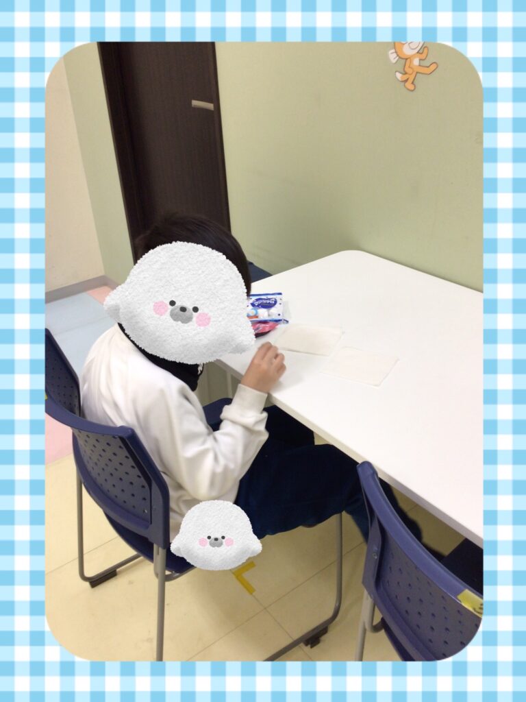 好きなおやつを選び、おやつを食べる準備をします。